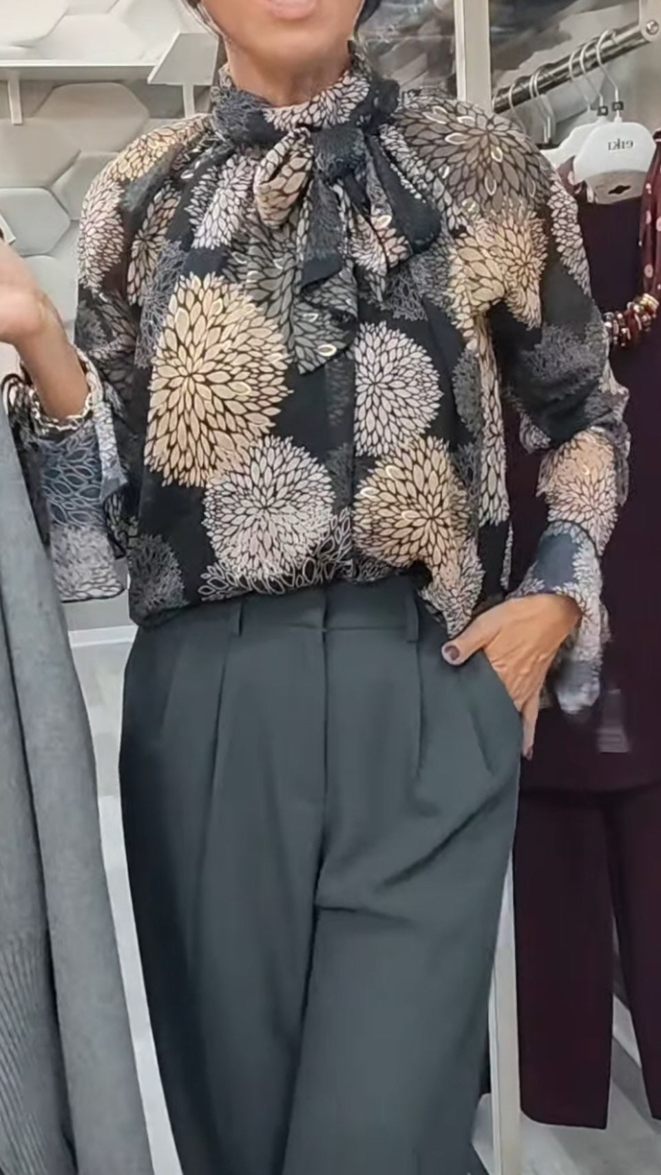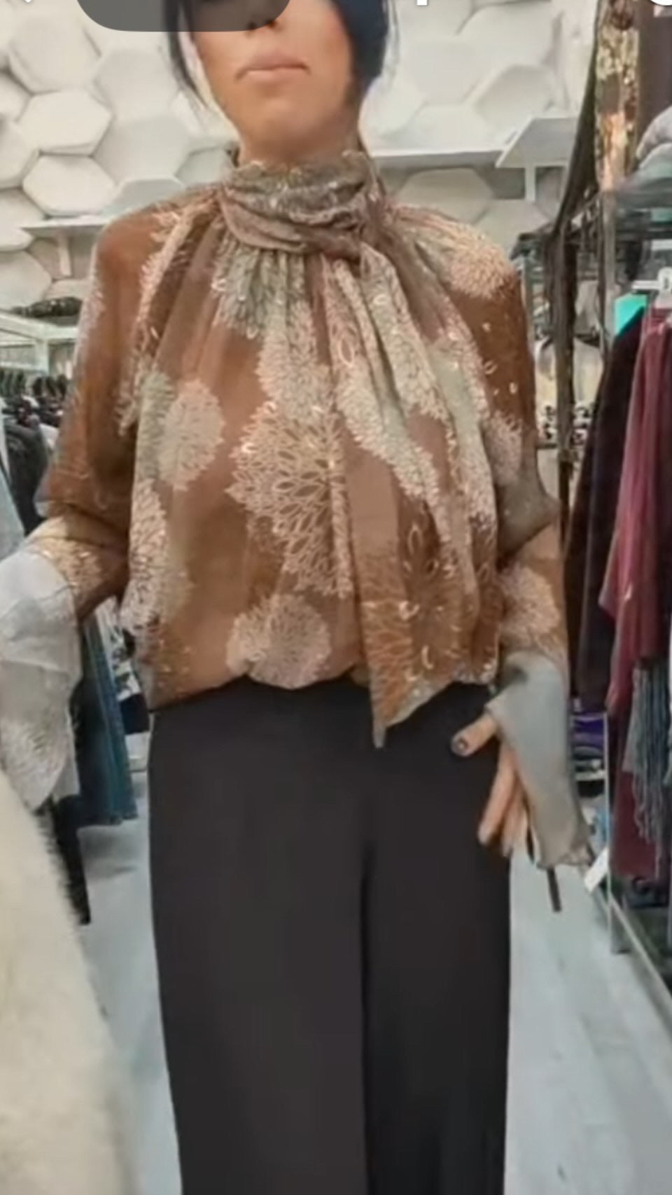 Camicia trasparente con fodera viscosa collo con fiocco