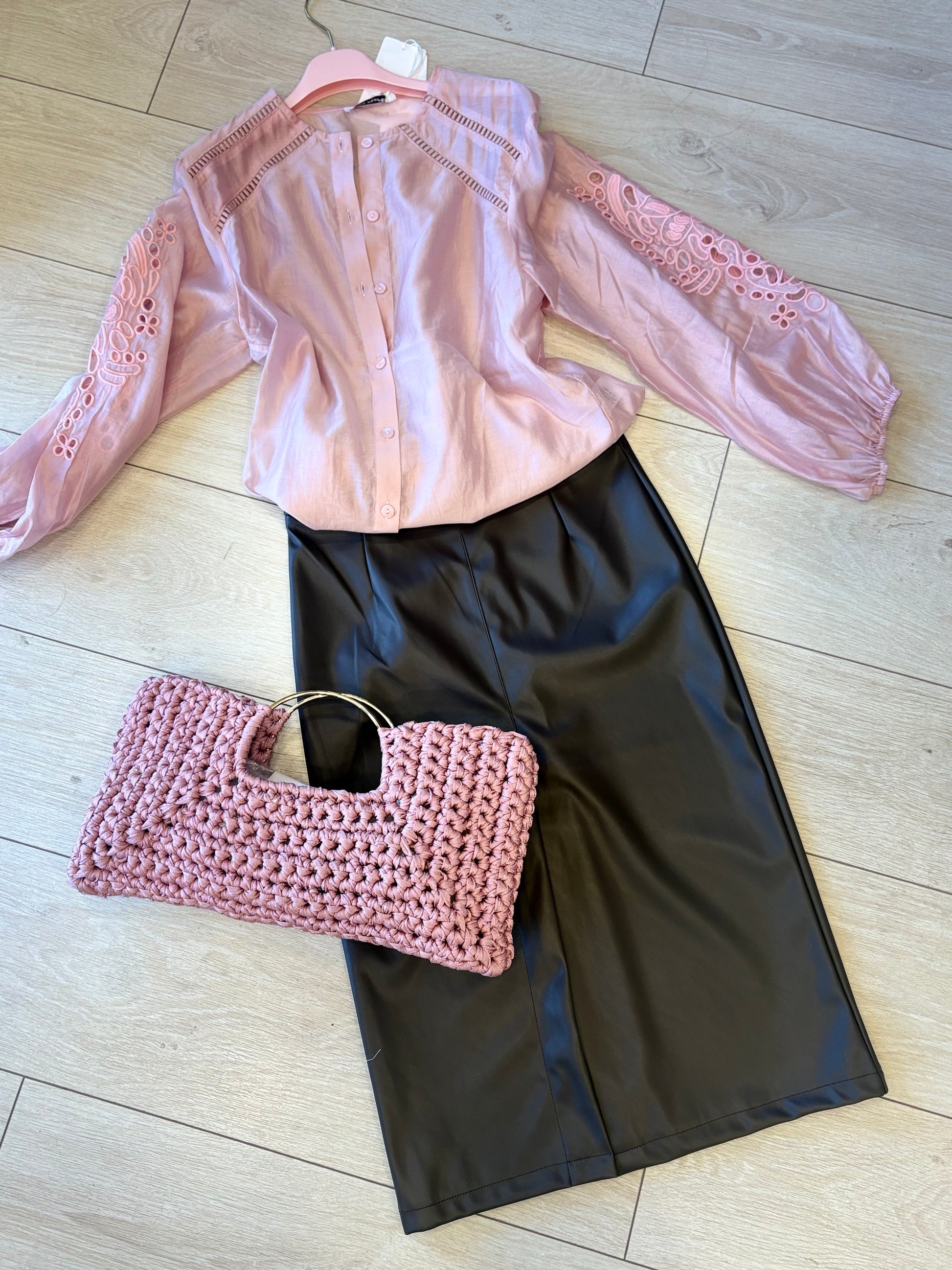 Gonna marrone ecopelle con spacco centrale